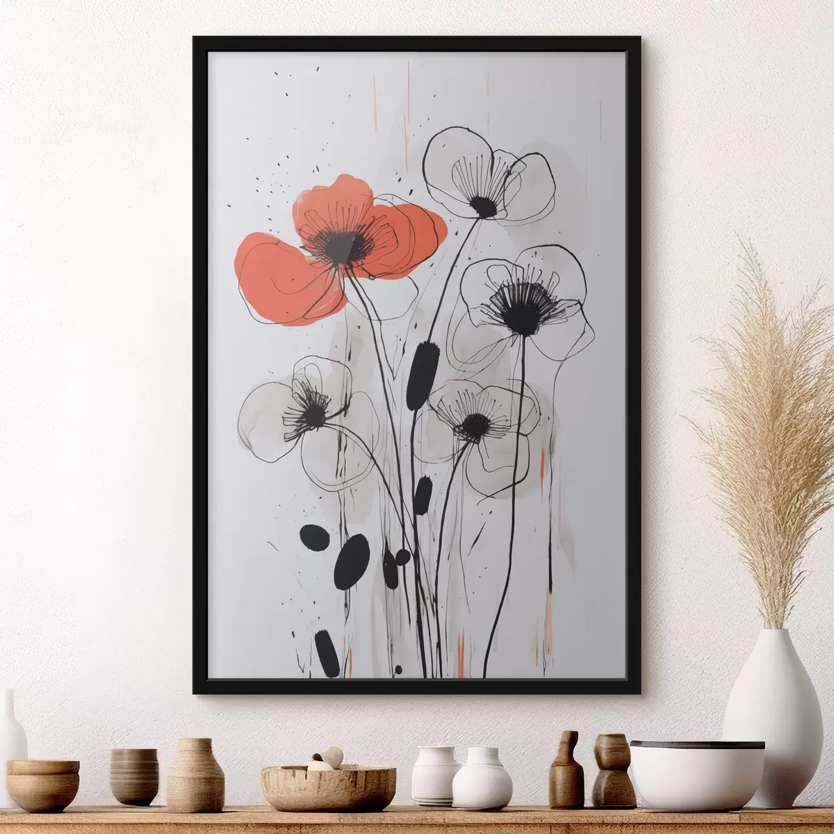 Poster Abstracte bloemen imitatie van een tekening N° f47500