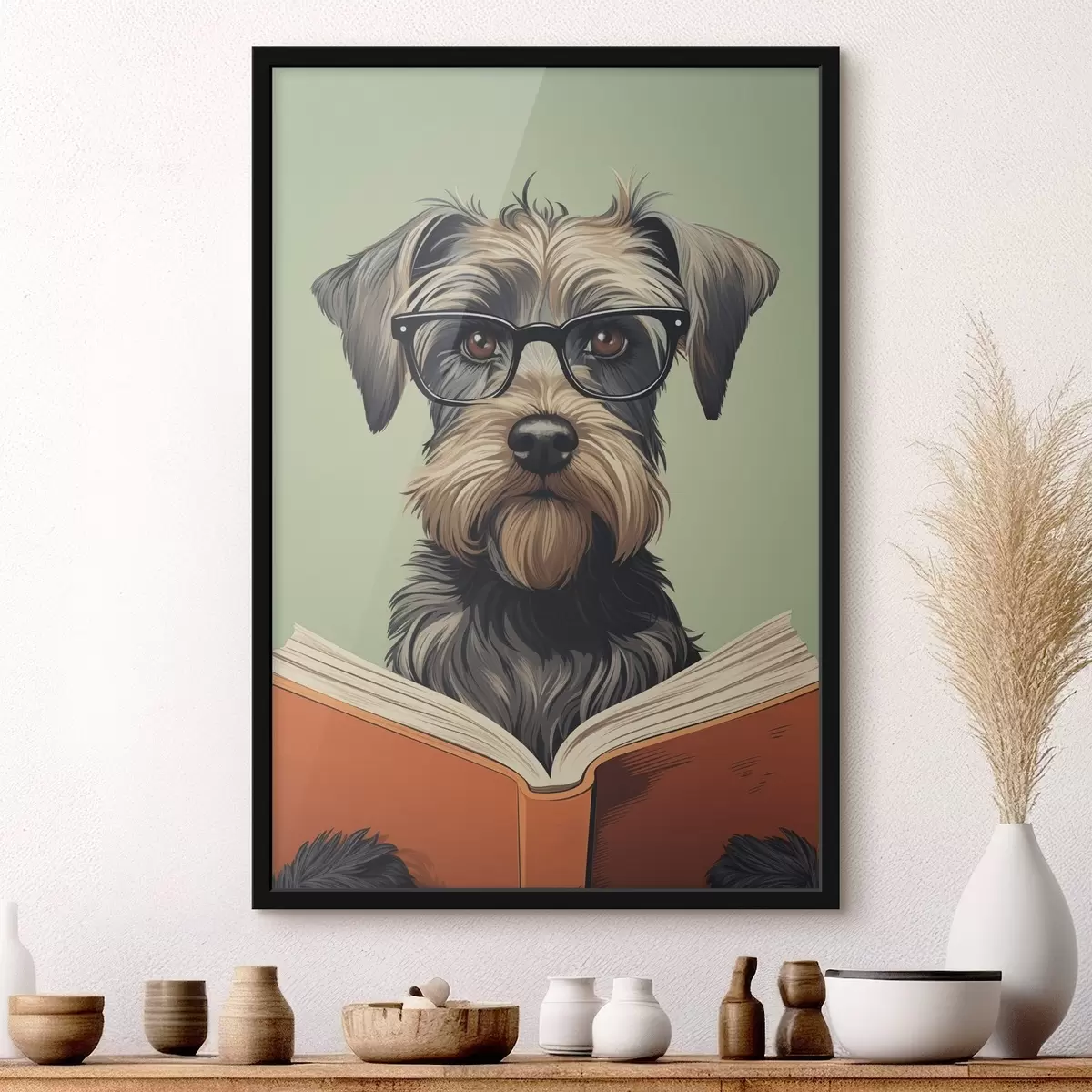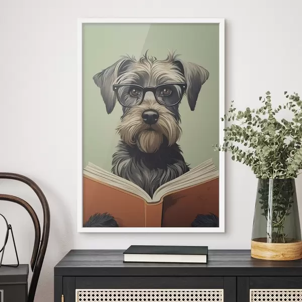 Poster Een hond met een boek f47502