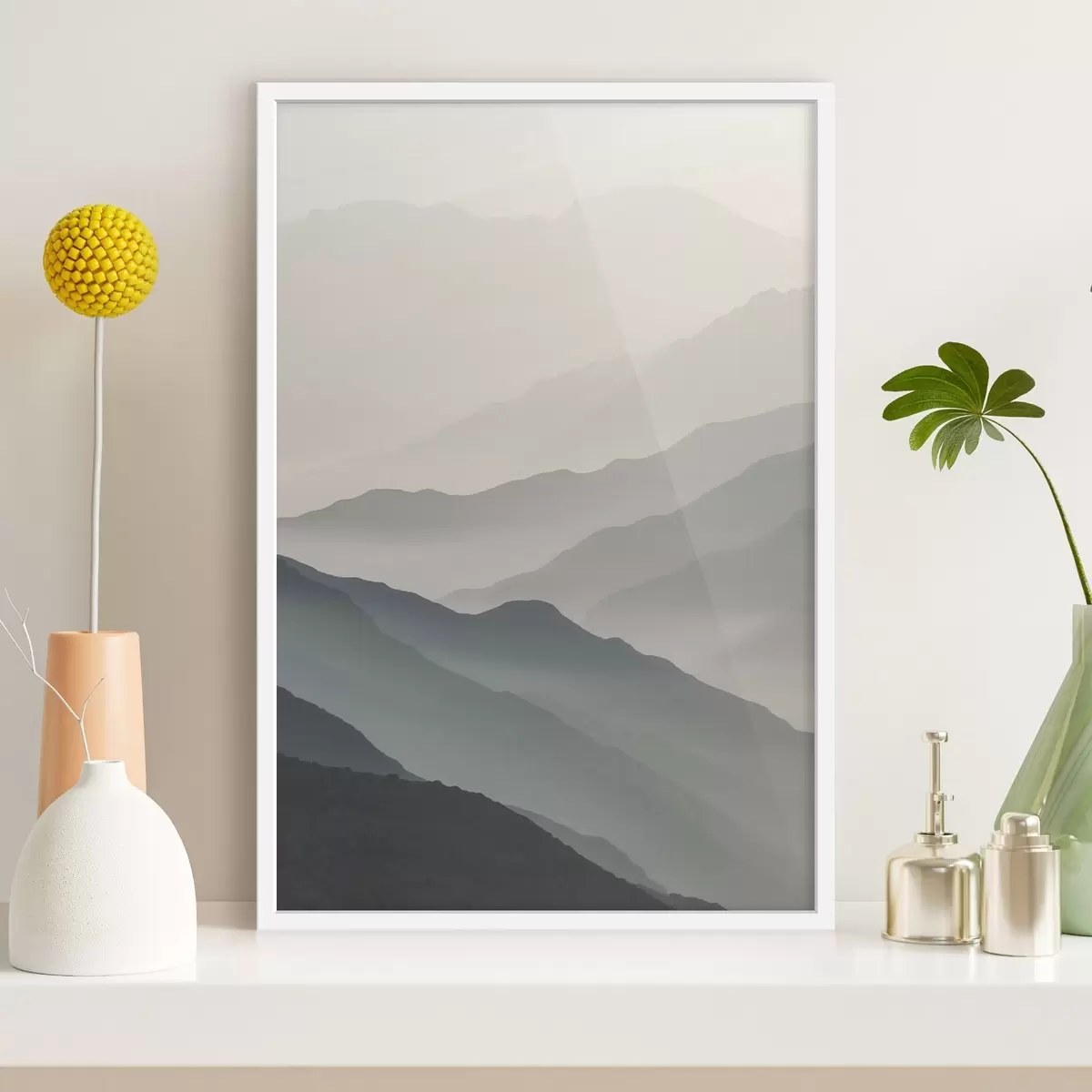 Je kunt het schilderij ophangen aan schroeven. Hiervoor leveren we bevestigingen bij onze foto's, zodat je de foto gemakkelijk kunt ophangen.