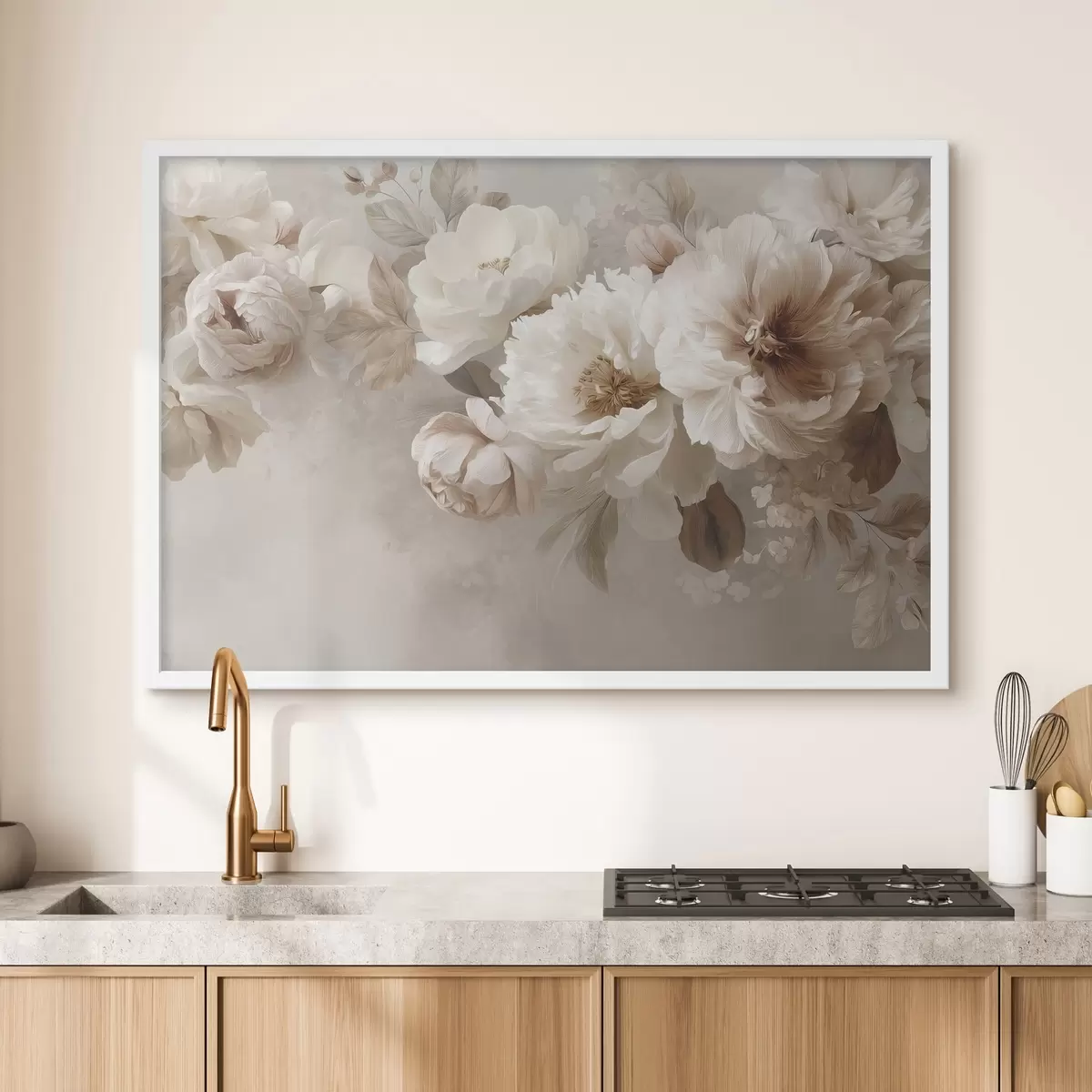 Je kunt het schilderij ophangen aan schroeven. Hiervoor leveren we bevestigingen bij onze foto's, zodat je de foto gemakkelijk kunt ophangen.