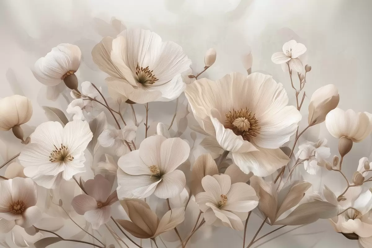Poster Grote bloemen op een lichte achtergrond N° f47645
