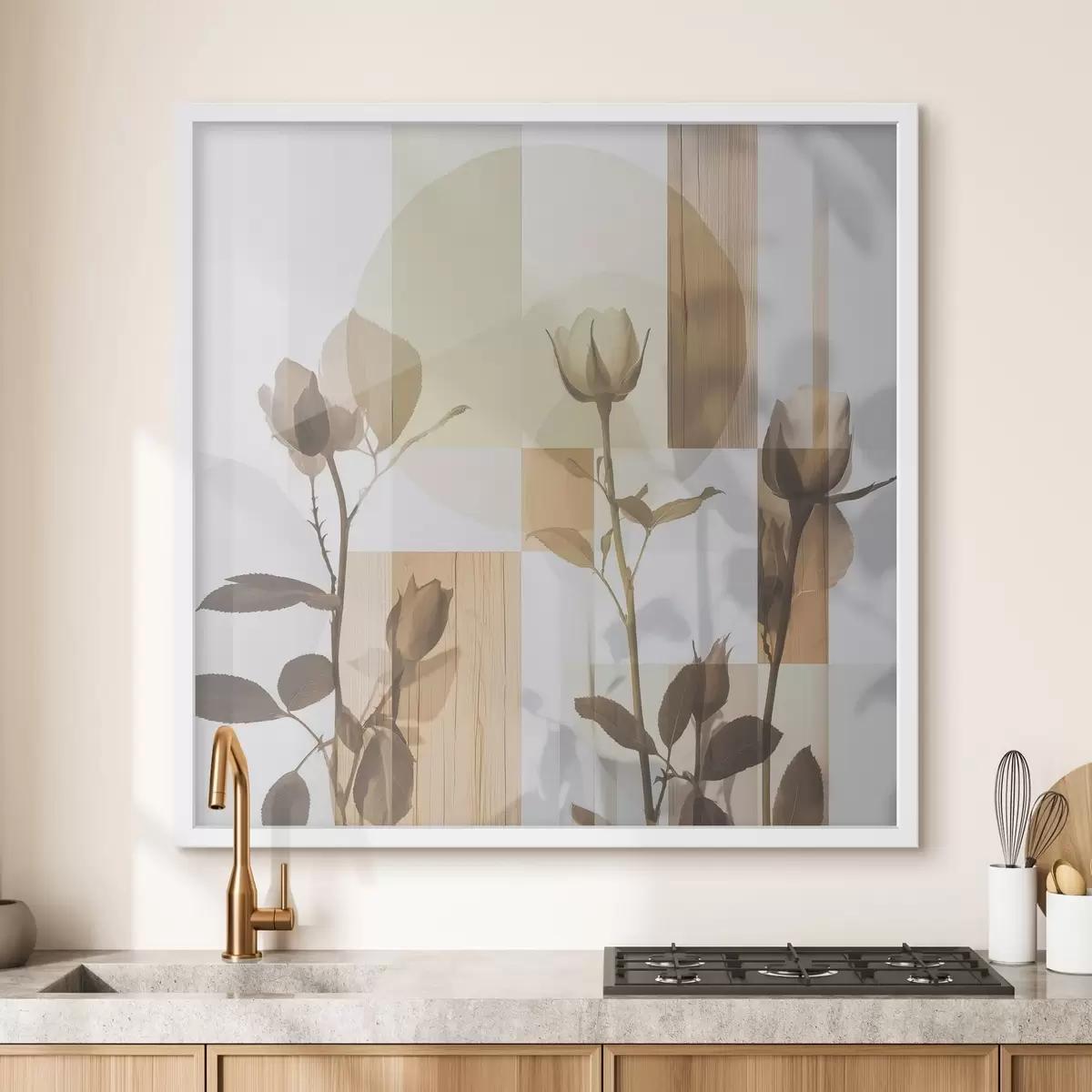 Poster Abstractie met bloemen en geometrische vormen N° f47654