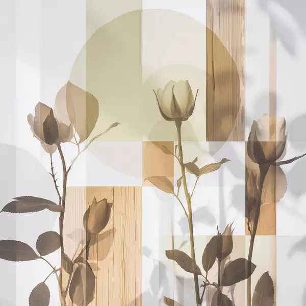 Poster Abstractie met bloemen en geometrische vormen N° f47654