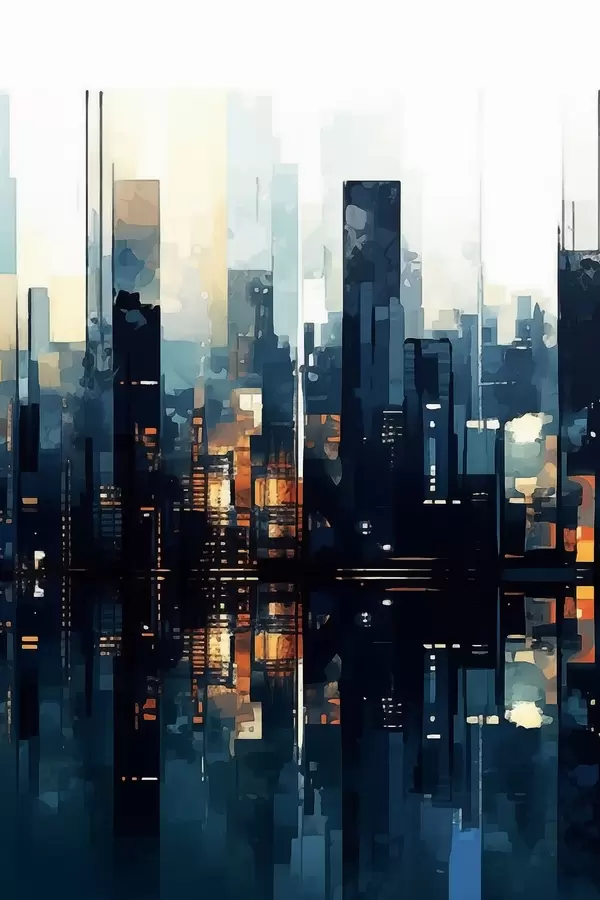 Poster Avondzon in een grote stad N° f47676