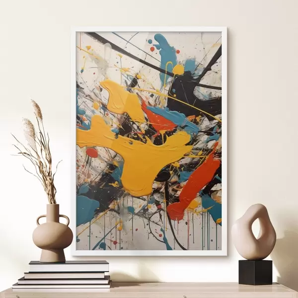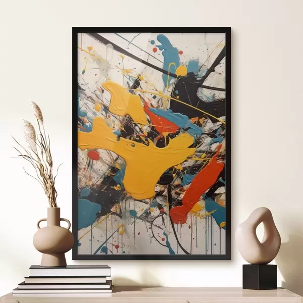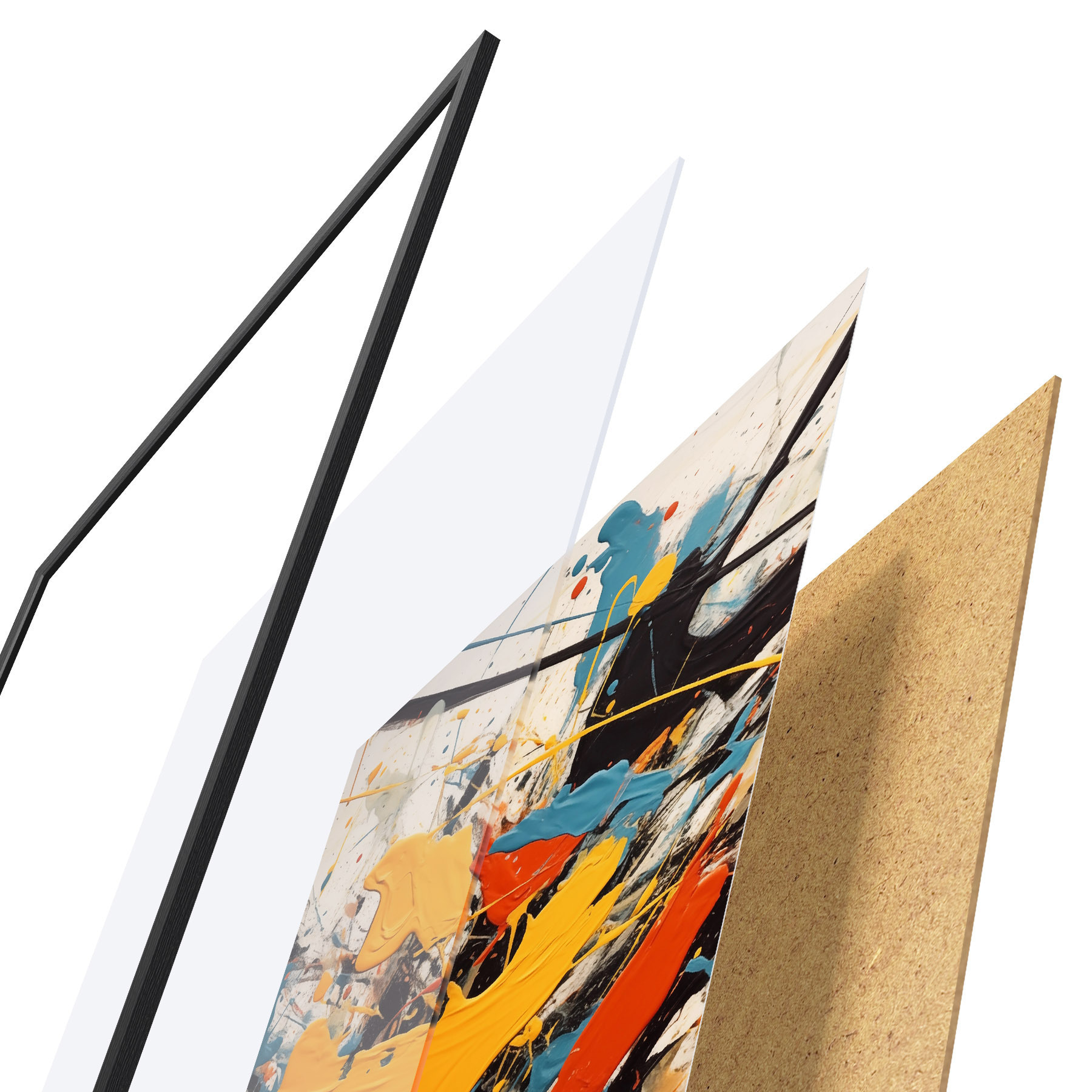 De poster bestaat uit een frame, plexiglas, geprinte afbeelding en spaanplaat achterkant. De poster kan meteen aan de muur worden gehangen dankzij de bevestigingen op de achterkant.