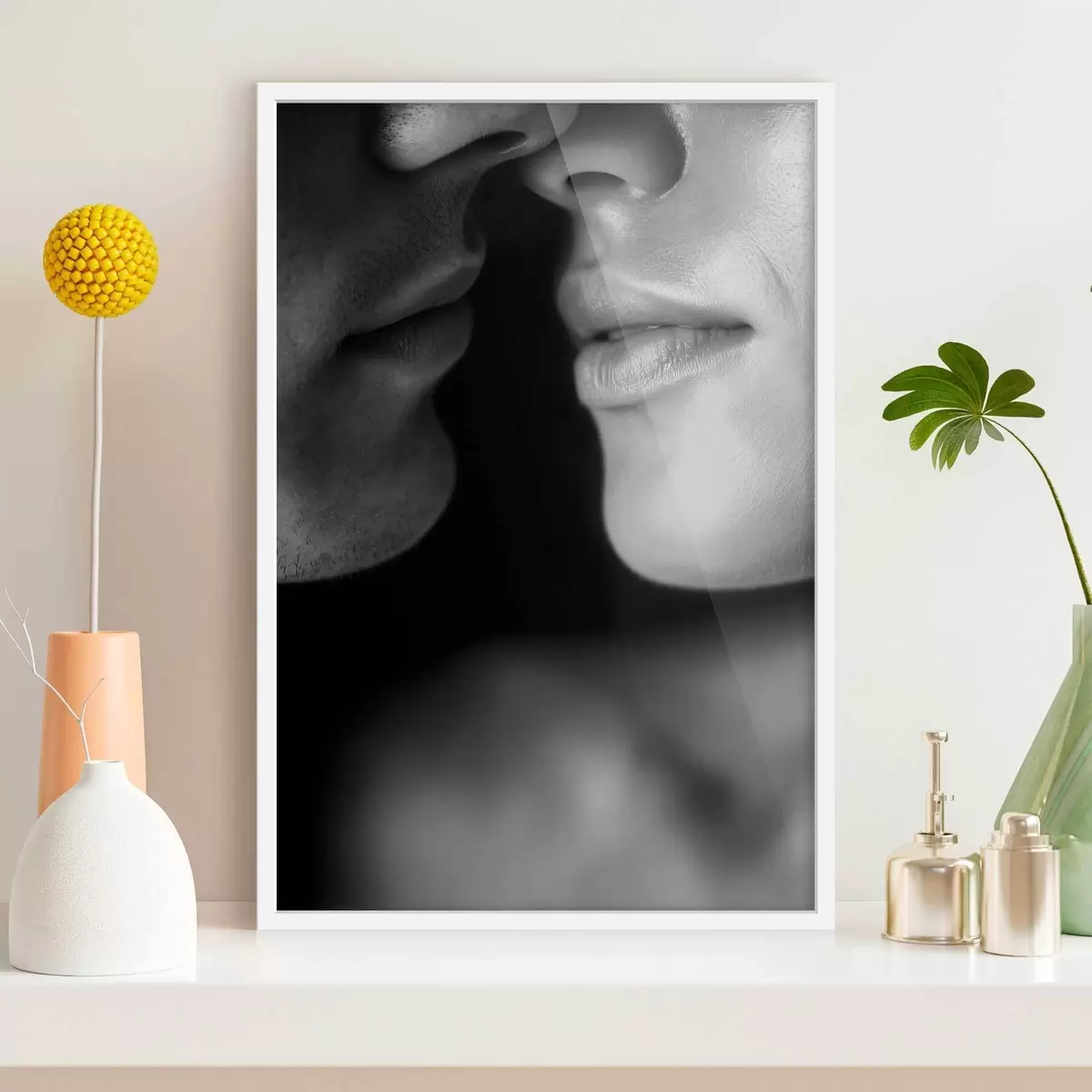 Poster zwarte en witte lippen van een man en een vrouw f47687
