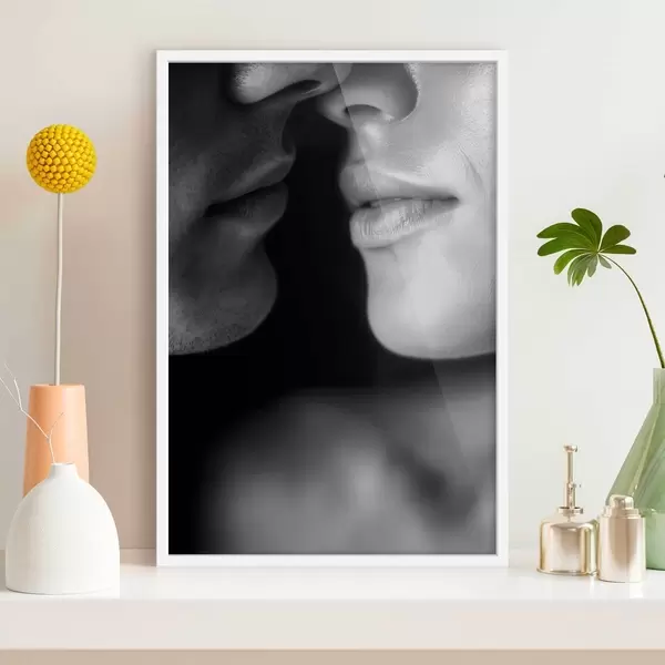 Poster zwarte en witte lippen van een man en een vrouw N° f47687