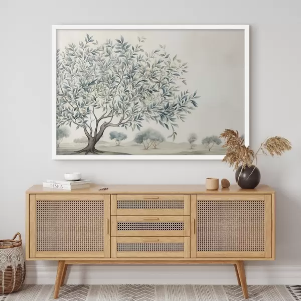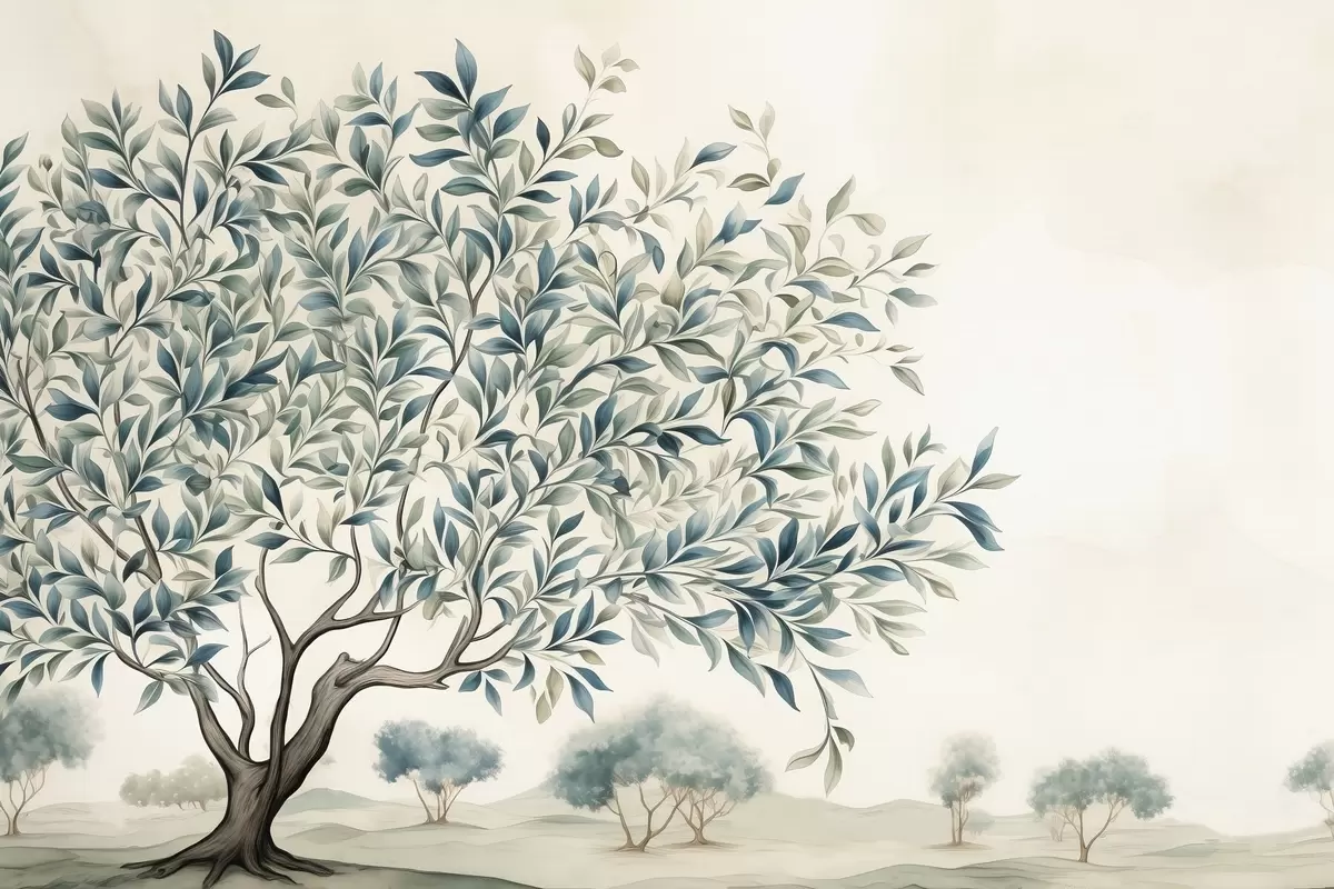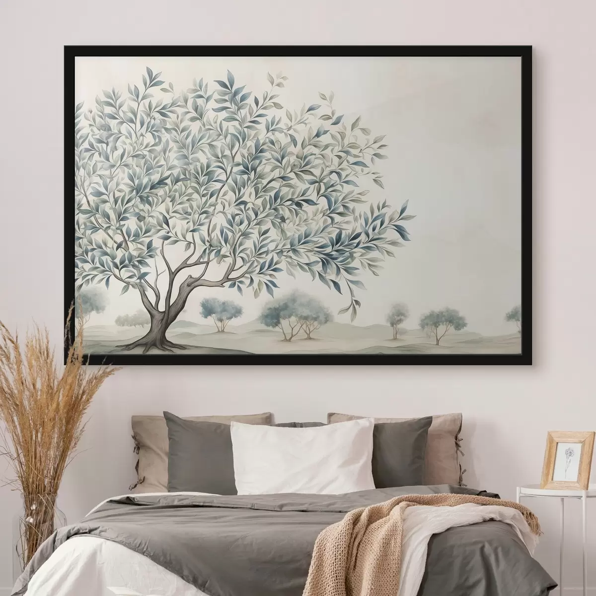 Poster Boom in een veld, aquarelschilderij N° f47705
