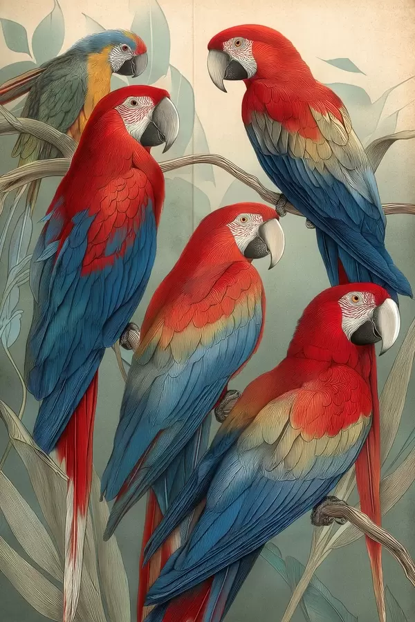 Poster Vintage papegaaien f47729