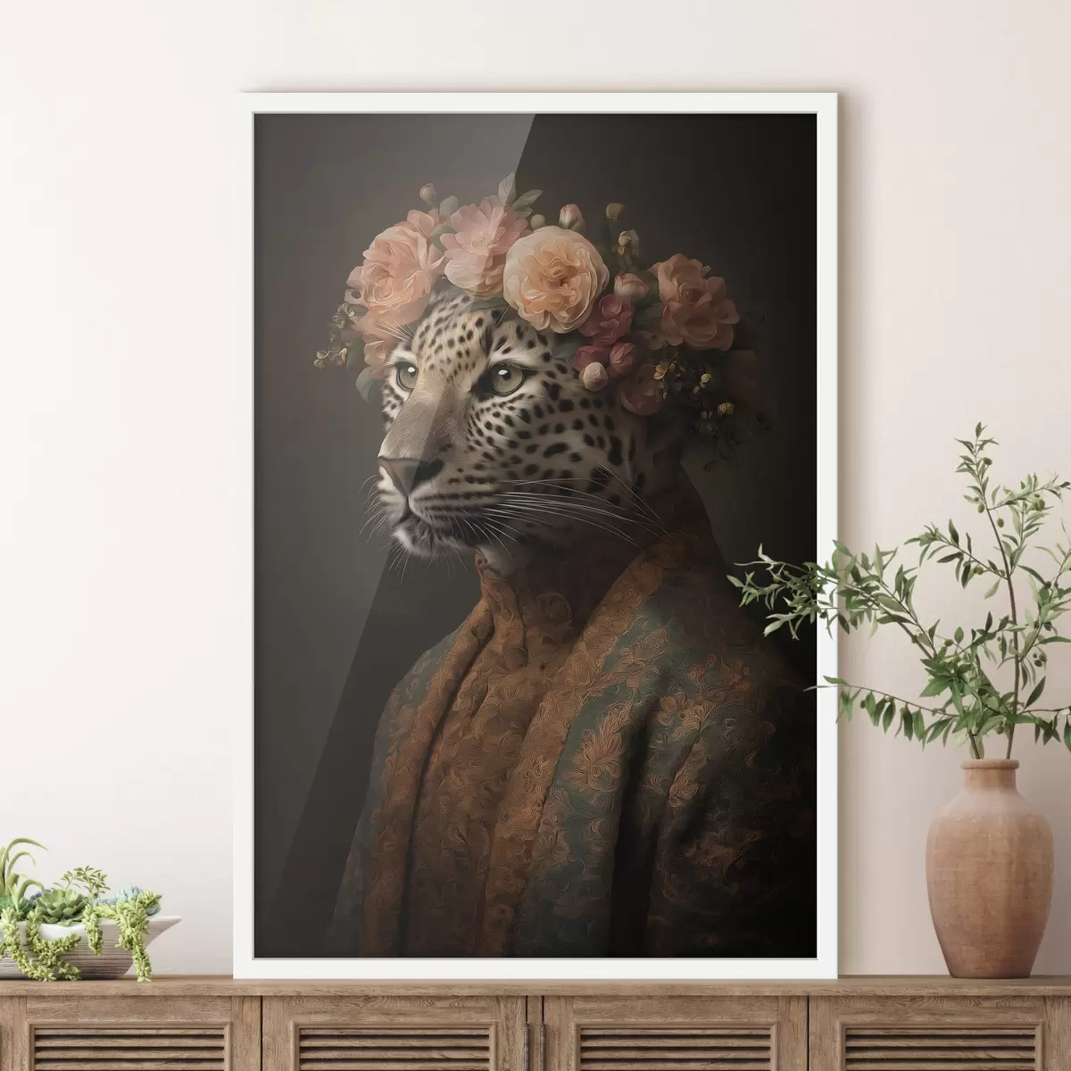Poster Luipaard met bloemen N° f47737