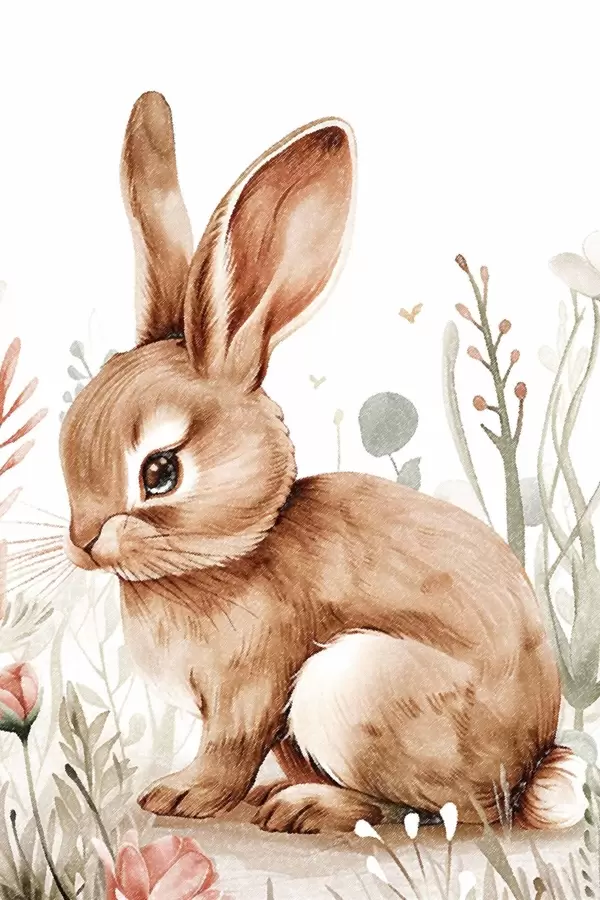 Poster Schattig konijntje in bloemen, potloodtekening N° f47741