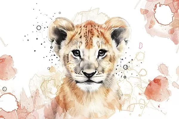 Poster Aquarel leeuwenwelpje, potlood-effect N° f47742