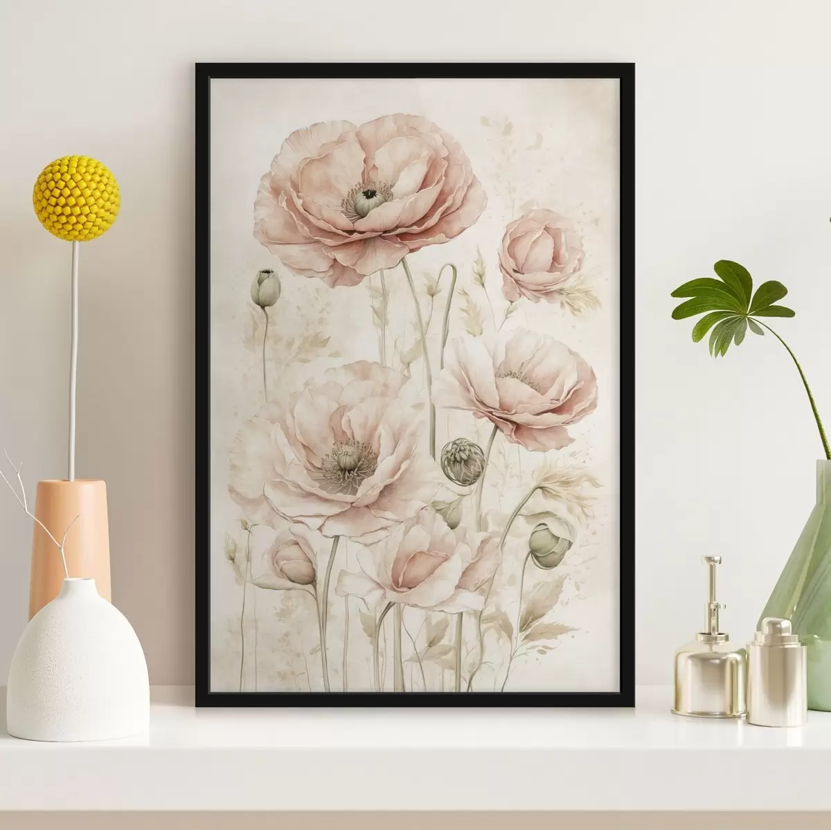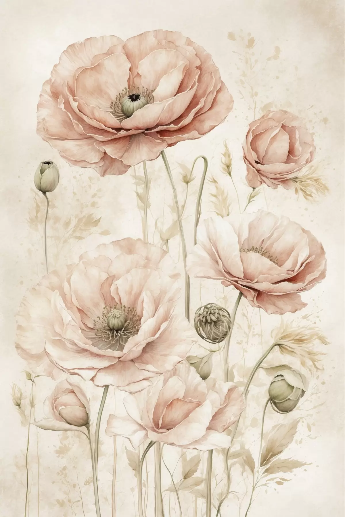 Poster Delicate bloemen in lichtroze tinten f47756