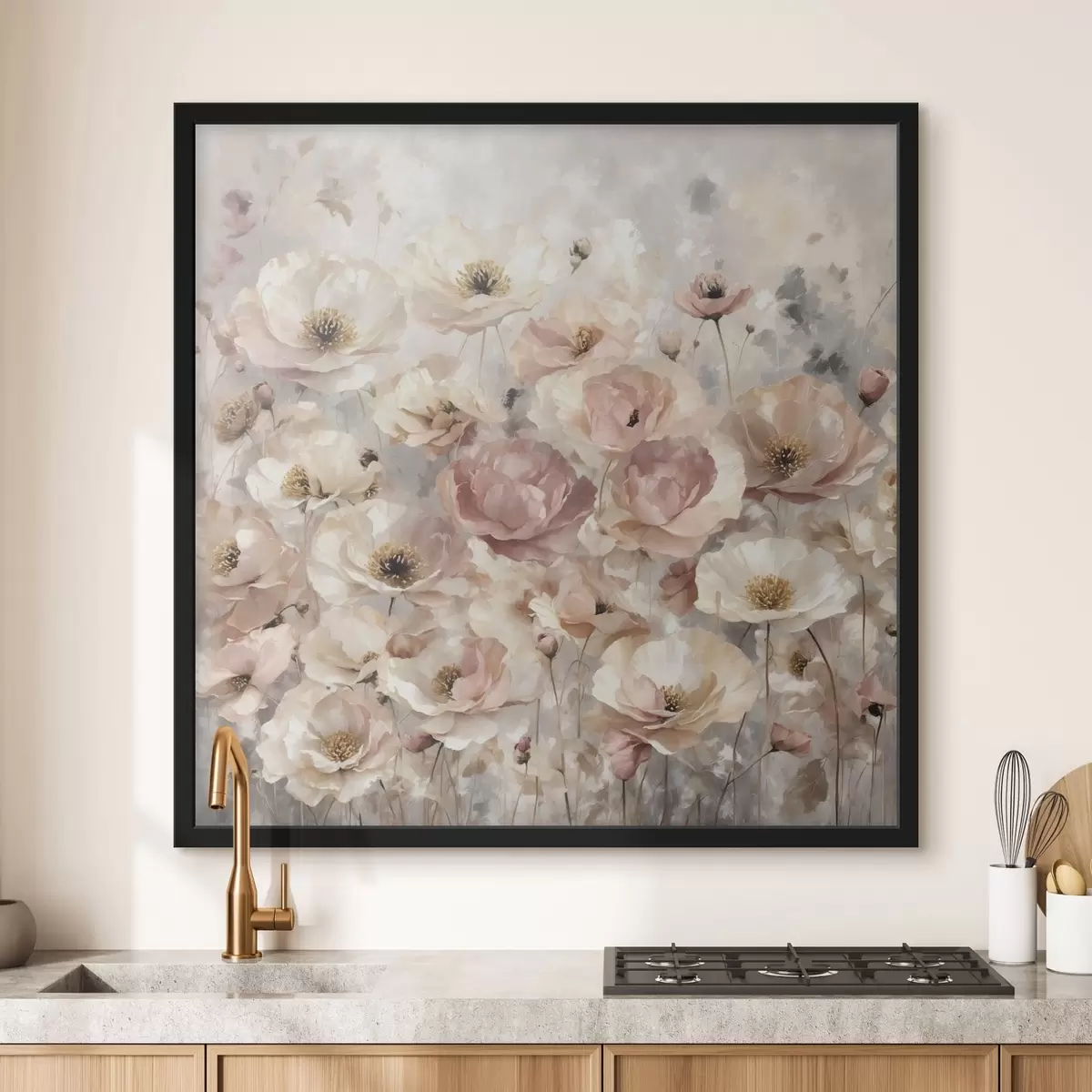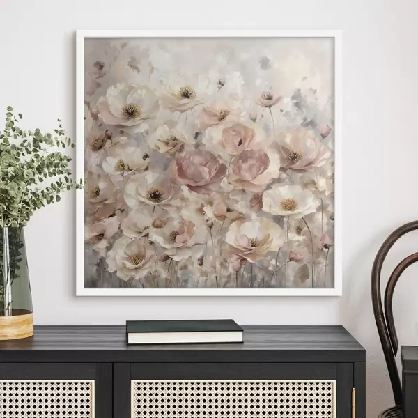 Poster Veld met lichte bloemen in zachte tinten f47757