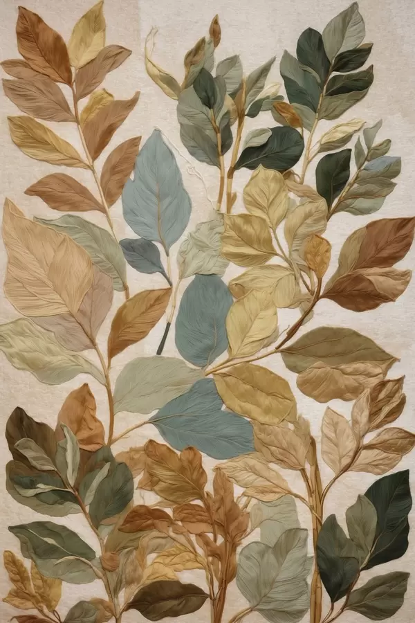 Poster Decoratieve bladeren in een warm, natuurlijk kleurenpalet N° f47759