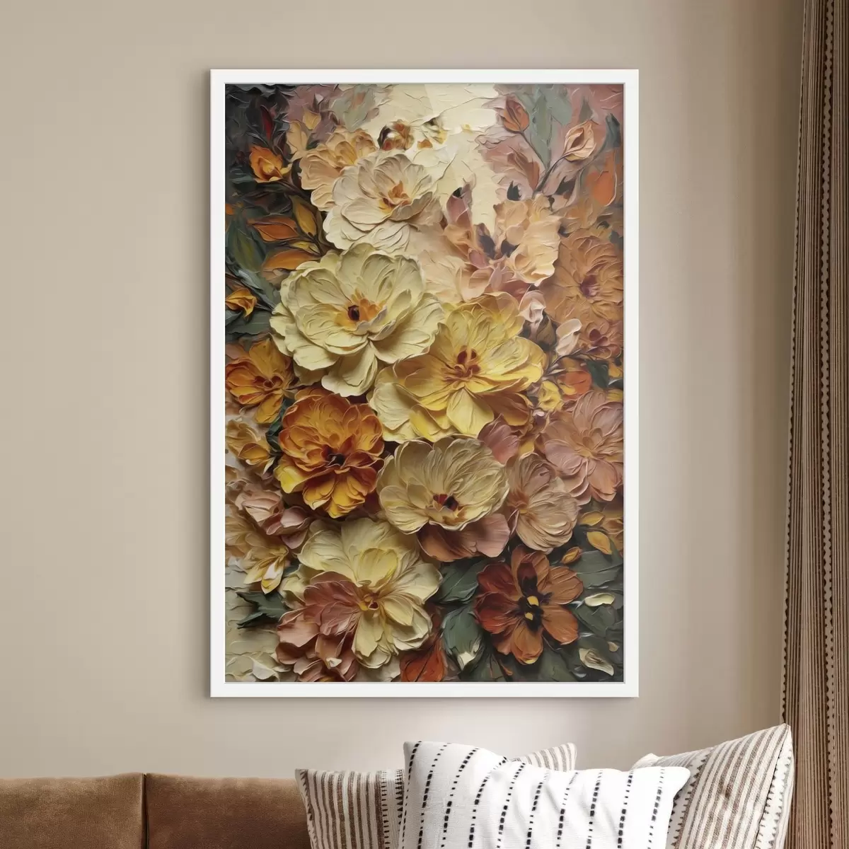 Poster Weelderige compositie van levendige bloemen in warme tinten N° f47760
