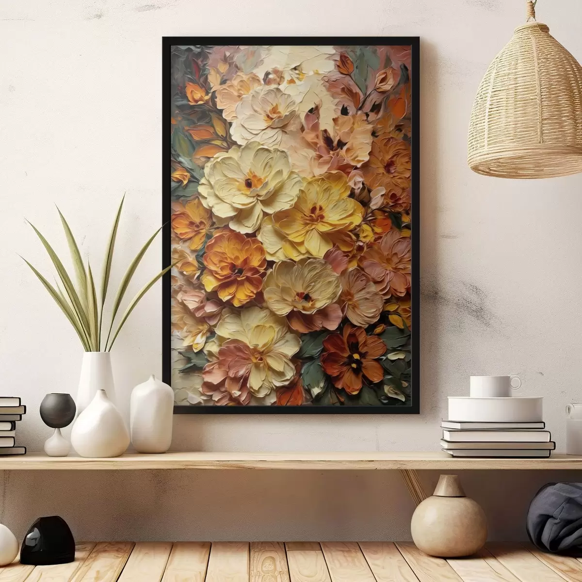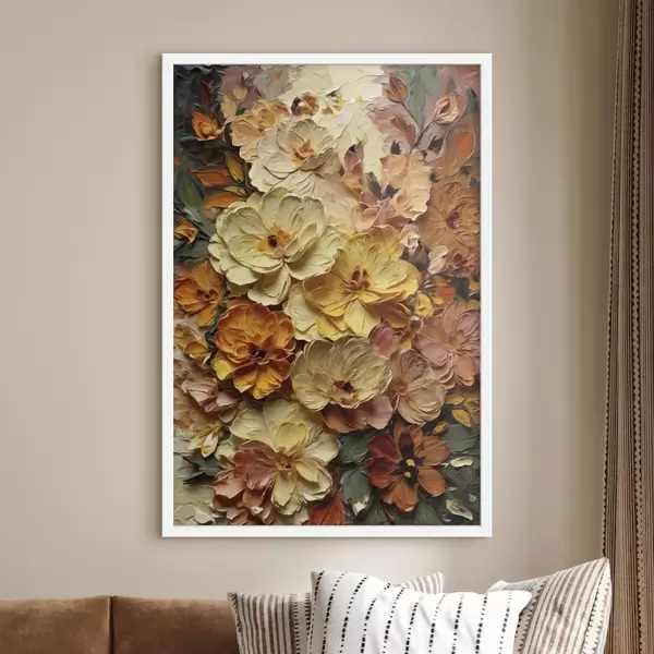 Poster Weelderige compositie van levendige bloemen in warme tinten f47760