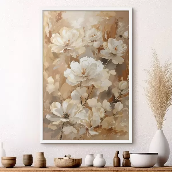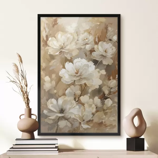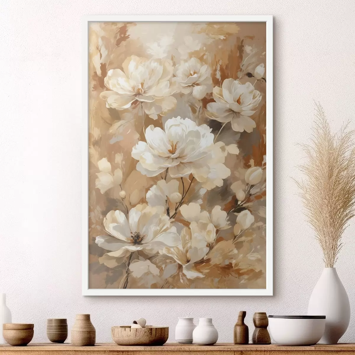 Poster Grote lichte bloemen geschilderd met brede penseelstreken f47761
