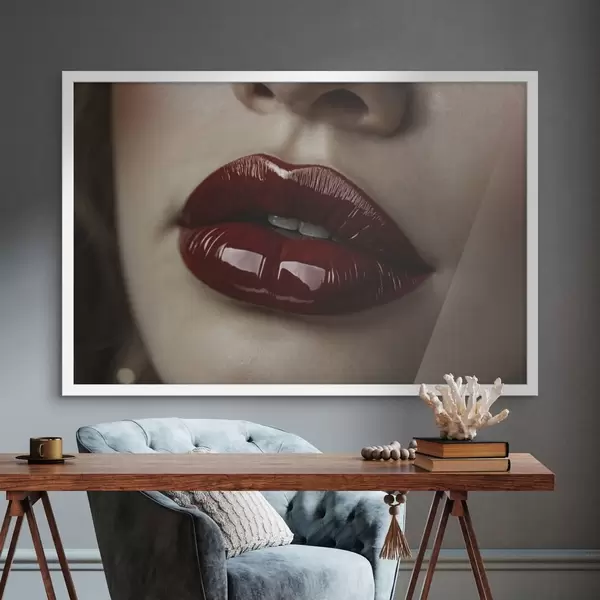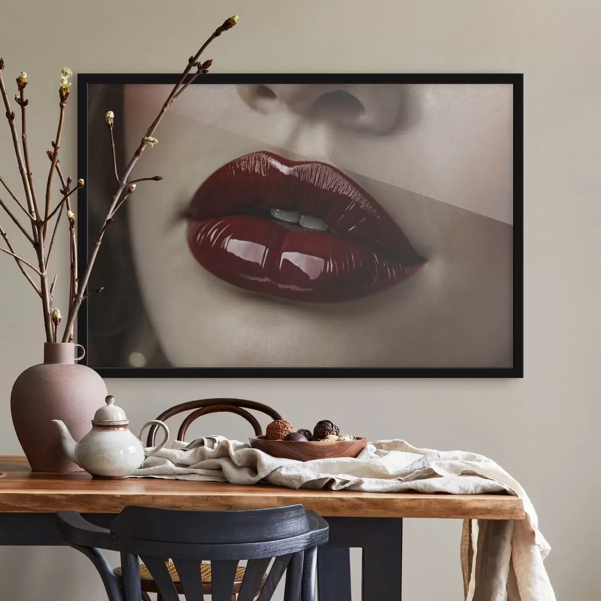 Poster Zeer close-up van glanzende rode lippen N° f47772