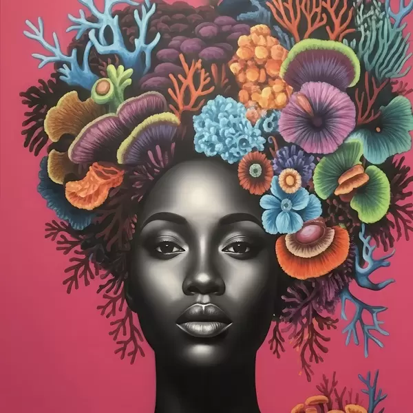 Poster Psychedelisch portret van een vrouw met paddenstoelen f47786