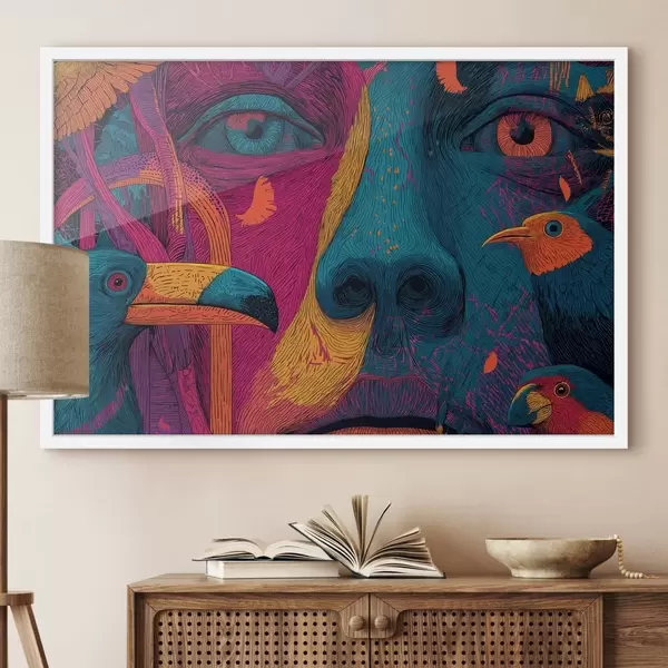 De poster bestaat uit een frame, plexiglas, geprinte afbeelding en spaanplaat achterkant. De poster kan meteen aan de muur worden gehangen dankzij de bevestigingen op de achterkant.