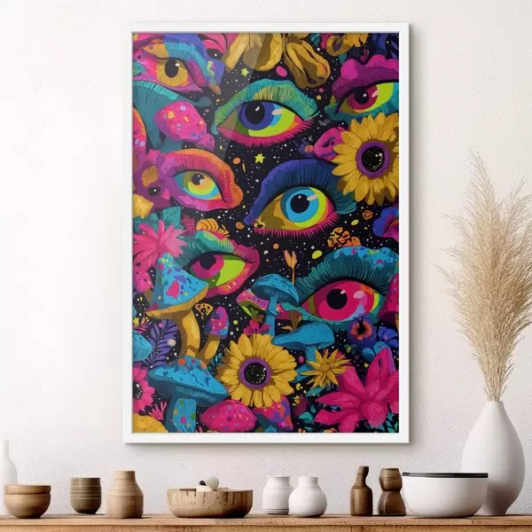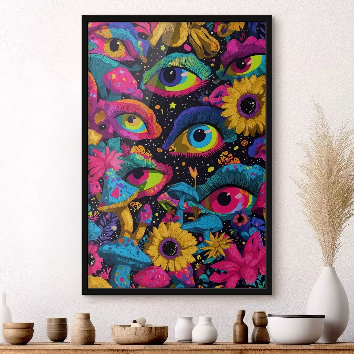 De poster bestaat uit een frame, plexiglas, geprinte afbeelding en spaanplaat achterkant. De poster kan meteen aan de muur worden gehangen dankzij de bevestigingen op de achterkant.