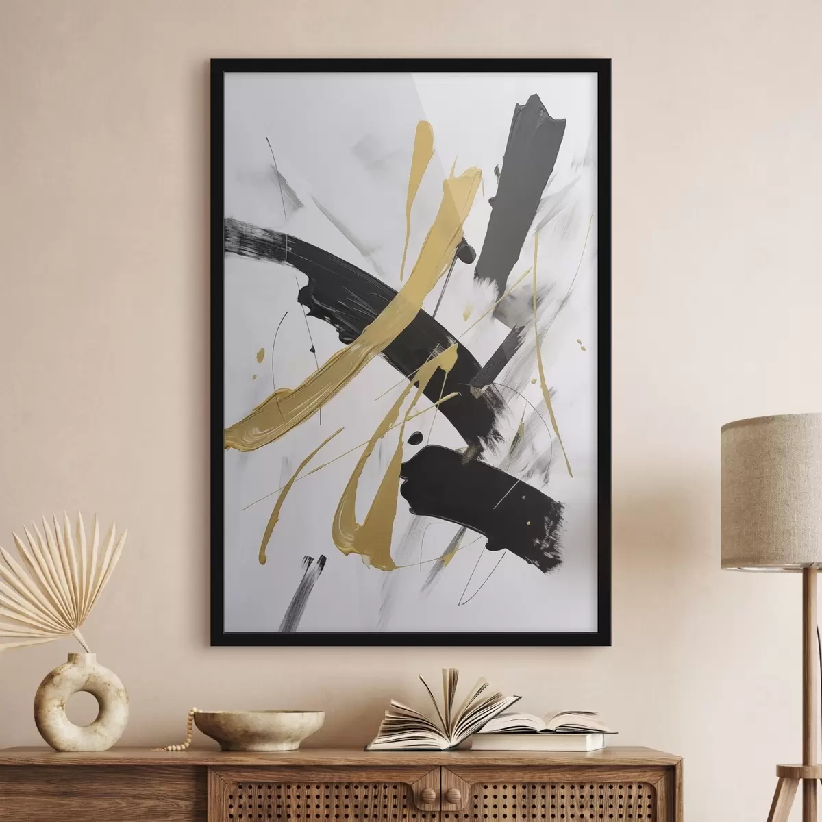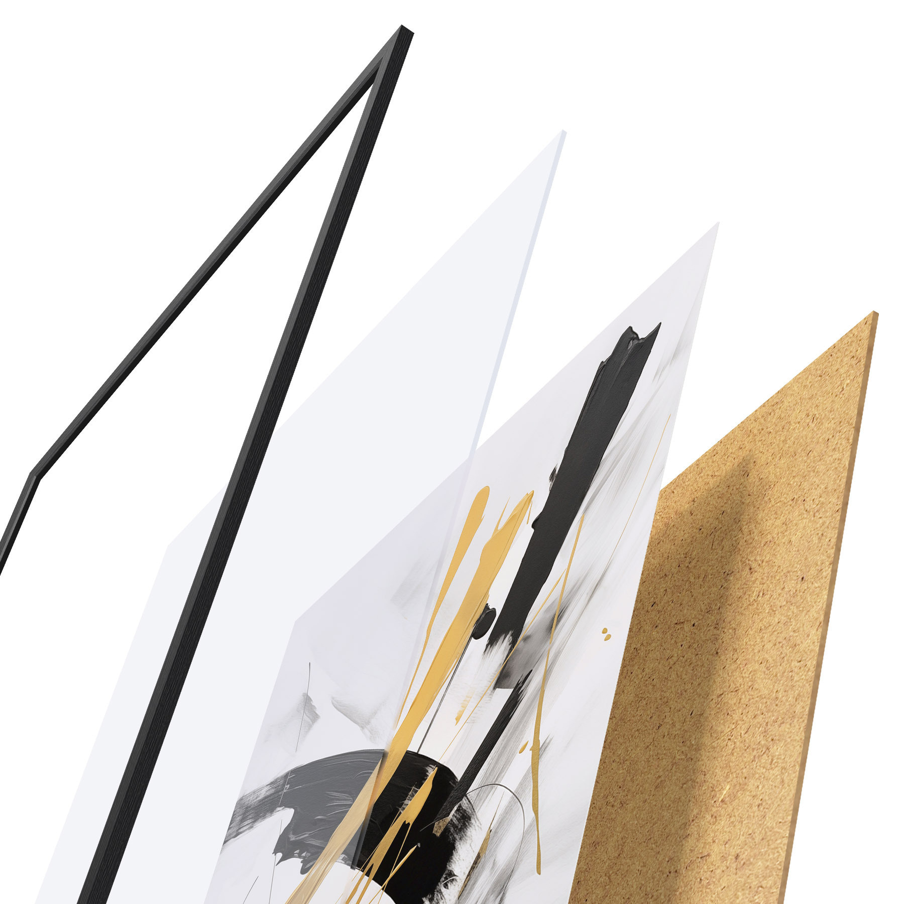 De poster bestaat uit een frame, plexiglas, geprinte afbeelding en spaanplaat achterkant. De poster kan meteen aan de muur worden gehangen dankzij de bevestigingen op de achterkant.