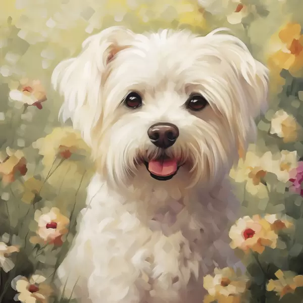 Poster Kleine hond in bloemen N° f47811