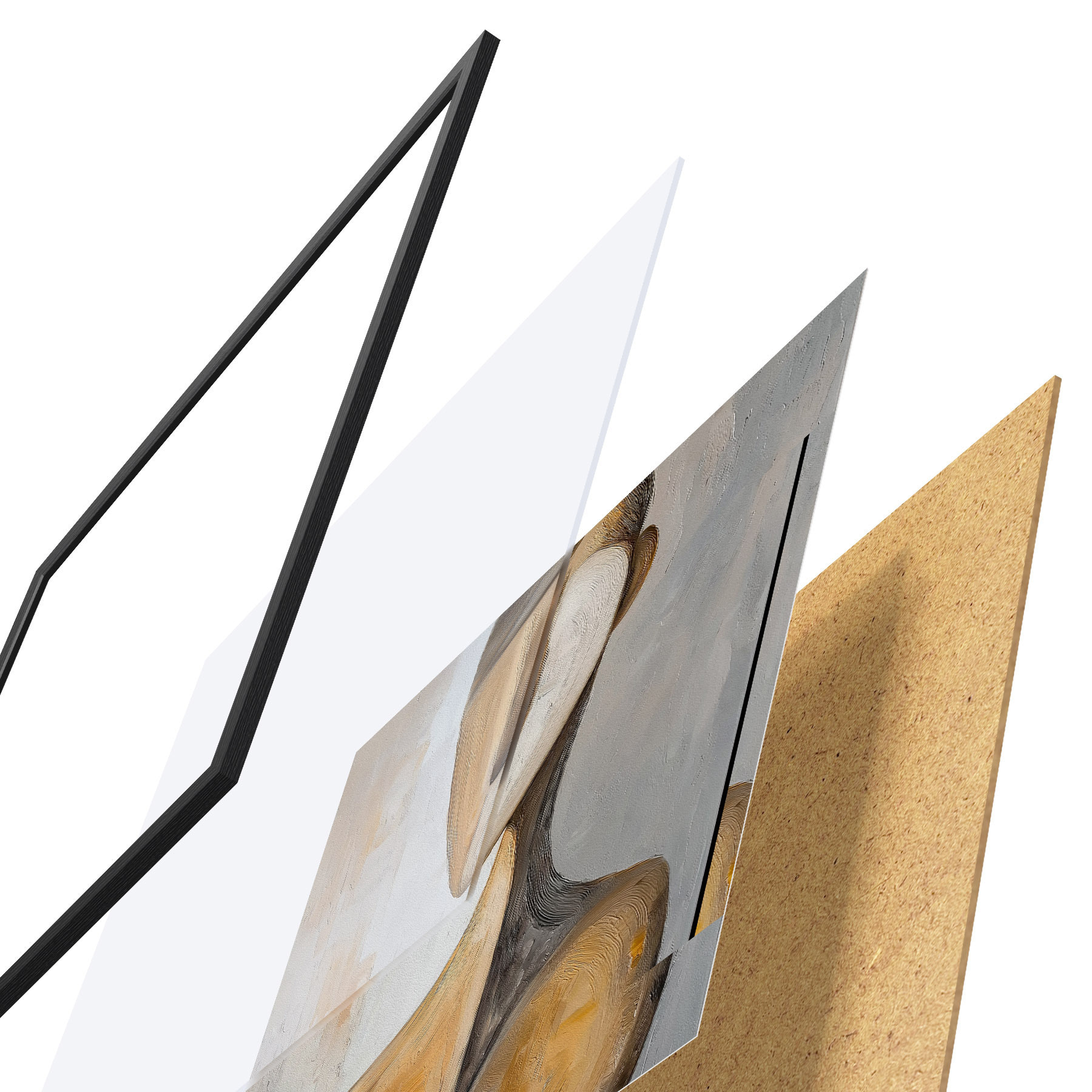 De poster bestaat uit een frame, plexiglas, geprinte afbeelding en spaanplaat achterkant. De poster kan meteen aan de muur worden gehangen dankzij de bevestigingen op de achterkant.