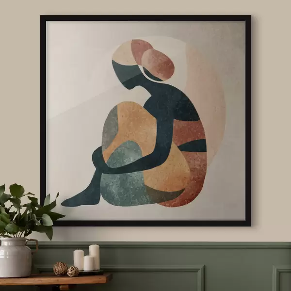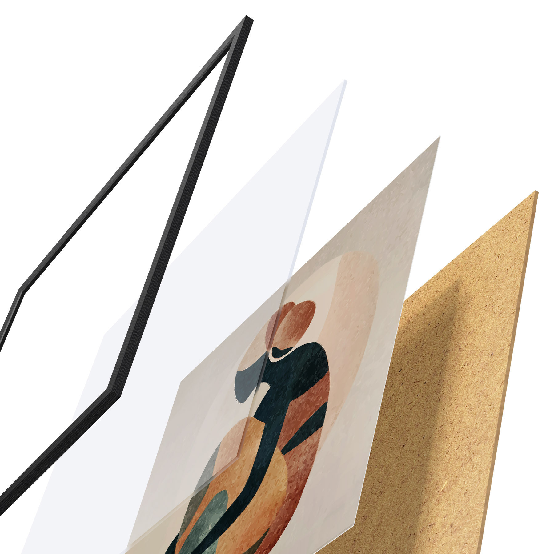 De poster bestaat uit een frame, plexiglas, geprinte afbeelding en spaanplaat achterkant. De poster kan meteen aan de muur worden gehangen dankzij de bevestigingen op de achterkant.