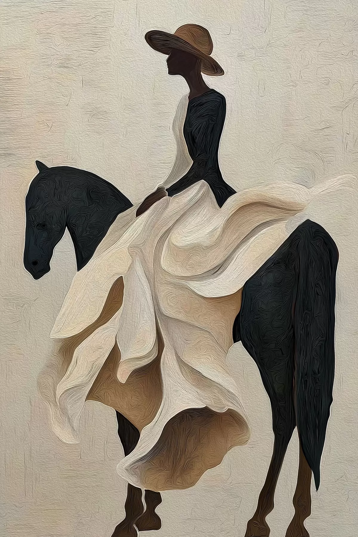Het schilderij kan voorzichtig worden schoongeveegd met een droge zachte doek of spons; het wordt niet aanbevolen om natte producten te gebruiken. Het gebruik van een vochtige spons is alleen toegestaan als het schilderij gevernist is.