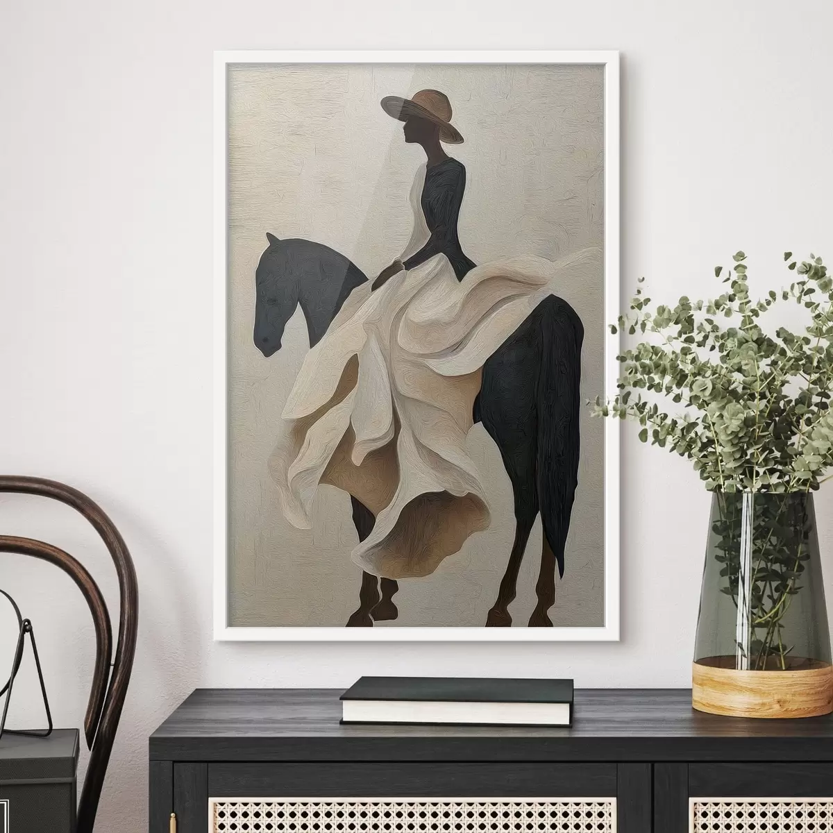 Je kunt het schilderij ophangen aan schroeven. Hiervoor leveren we bevestigingen bij onze foto's, zodat je de foto gemakkelijk kunt ophangen.