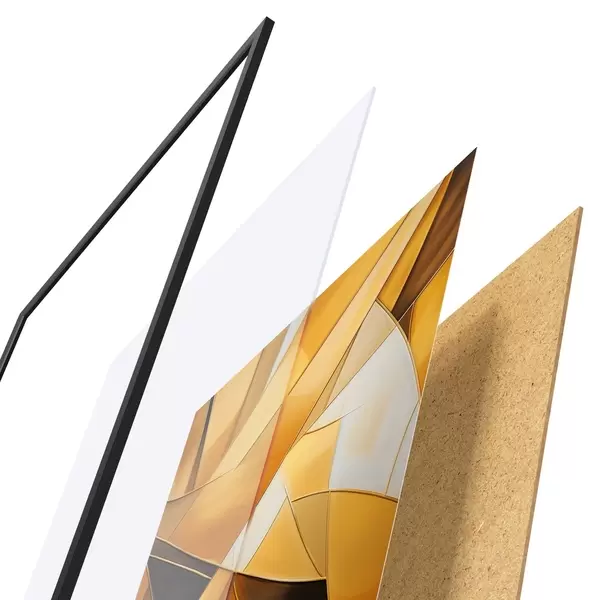 De poster bestaat uit een frame, plexiglas, geprinte afbeelding en spaanplaat achterkant. De poster kan meteen aan de muur worden gehangen dankzij de bevestigingen op de achterkant.