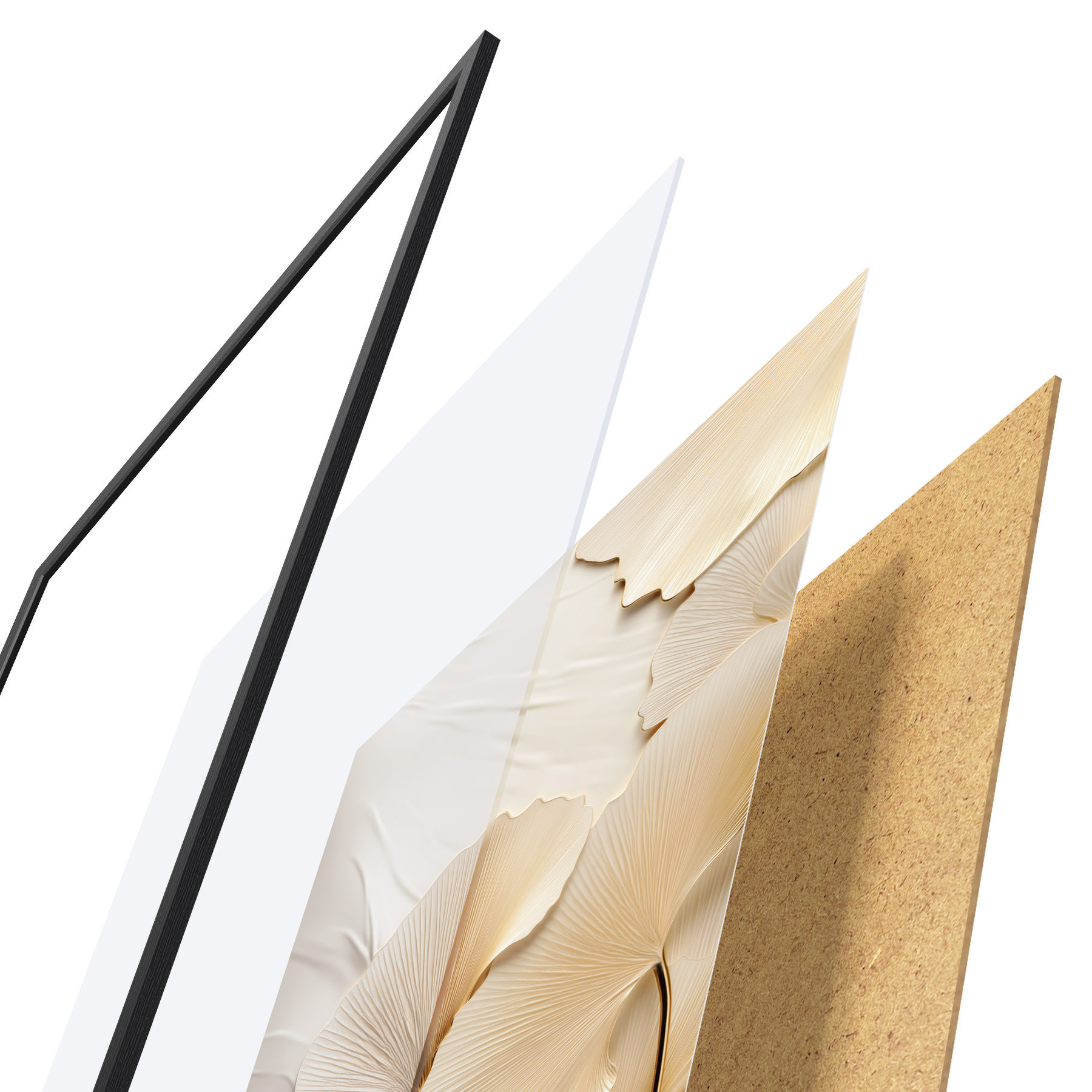 De poster bestaat uit een frame, plexiglas, geprinte afbeelding en spaanplaat achterkant. De poster kan meteen aan de muur worden gehangen dankzij de bevestigingen op de achterkant.