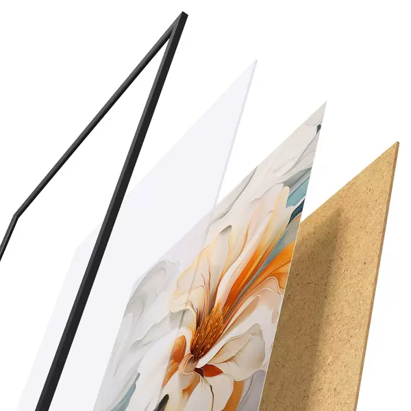 De poster bestaat uit een frame, plexiglas, geprinte afbeelding en spaanplaat achterkant. De poster kan meteen aan de muur worden gehangen dankzij de bevestigingen op de achterkant.