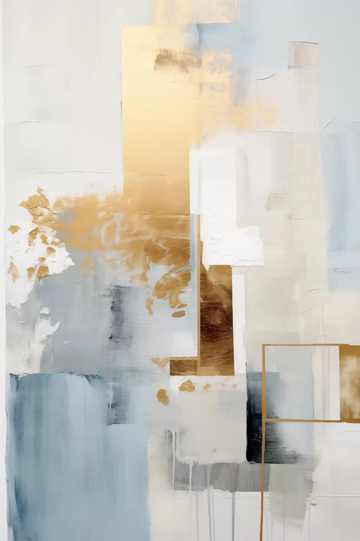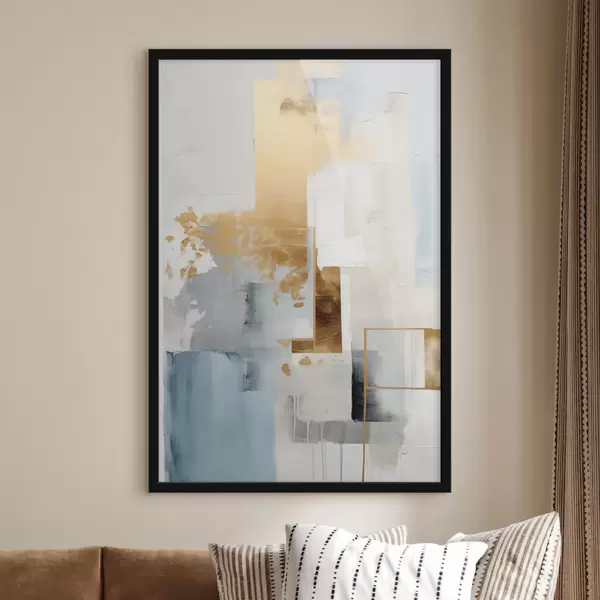 Poster Abstracte geometrische vormen in geel, blauw en wit, met textuur en een minimalistische compositie. N° f47881