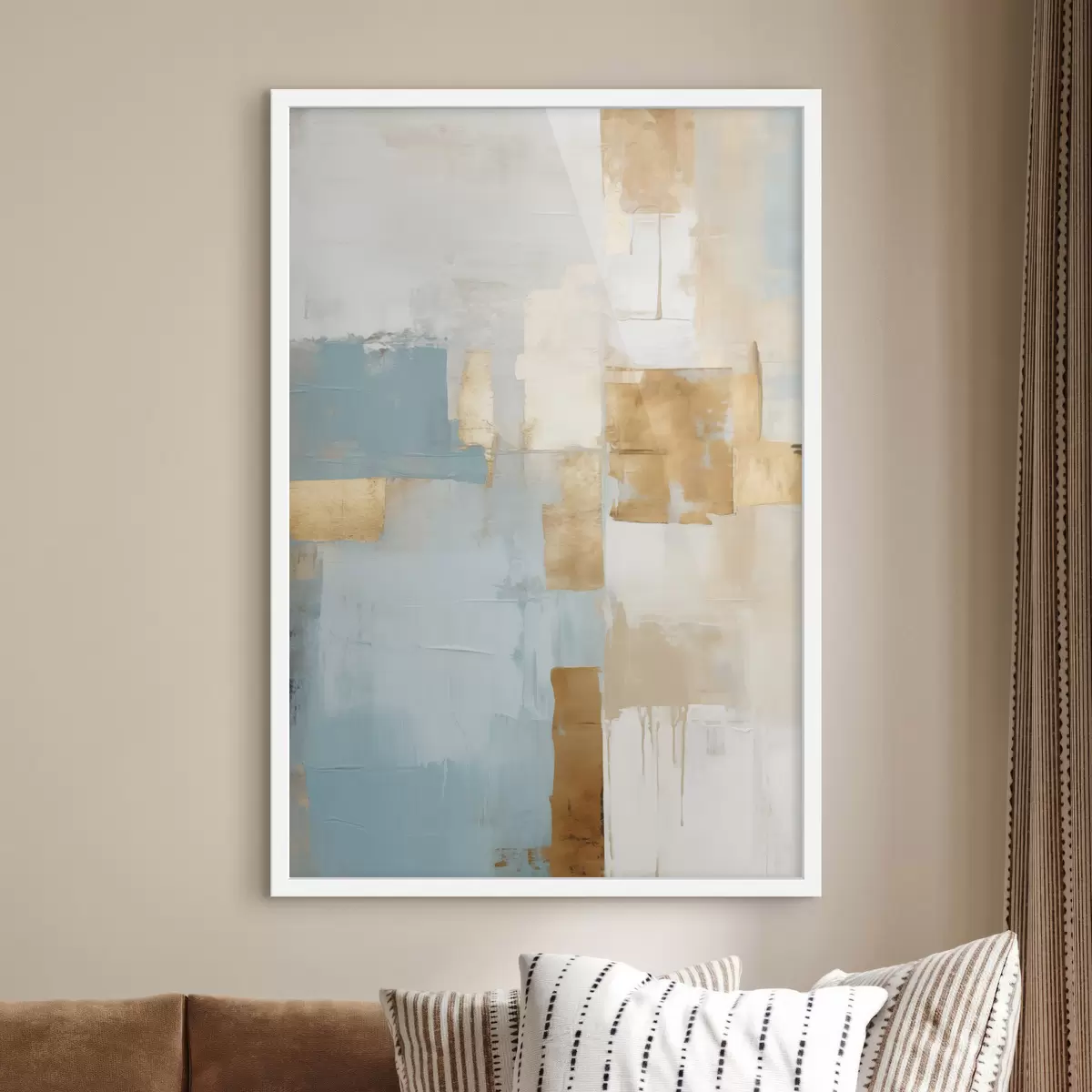Je kunt het schilderij ophangen aan schroeven. Hiervoor leveren we bevestigingen bij onze foto's, zodat je de foto gemakkelijk kunt ophangen.