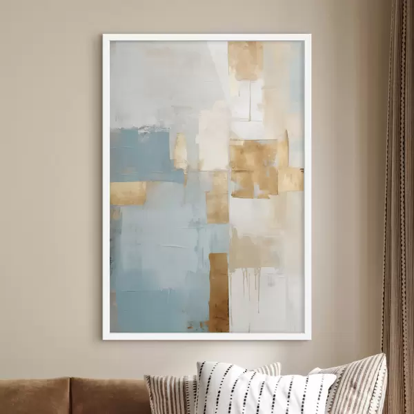 Poster Abstracte geometrische vormen in geel, blauw en wit, met textuur en een minimalistische compositie. N° f47882
