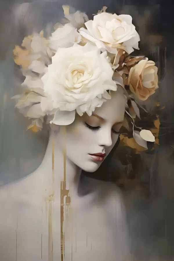 Poster Vrouwenportret met witte bloemen N° f47904