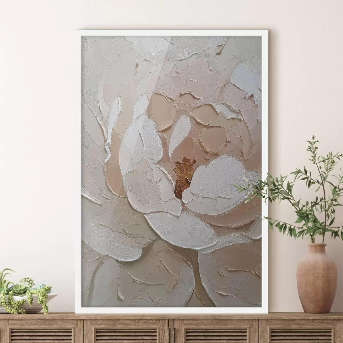 Je kunt het schilderij ophangen aan schroeven. Hiervoor leveren we bevestigingen bij onze foto's, zodat je de foto gemakkelijk kunt ophangen.