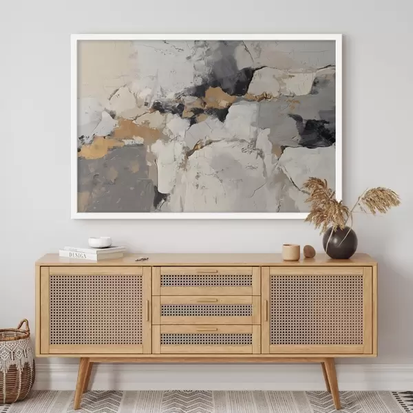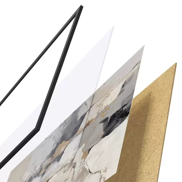 De poster bestaat uit een frame, plexiglas, geprinte afbeelding en spaanplaat achterkant. De poster kan meteen aan de muur worden gehangen dankzij de bevestigingen op de achterkant.