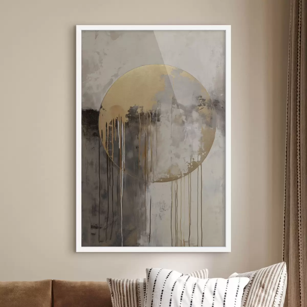 Je kunt het schilderij ophangen aan schroeven. Hiervoor leveren we bevestigingen bij onze foto's, zodat je de foto gemakkelijk kunt ophangen.