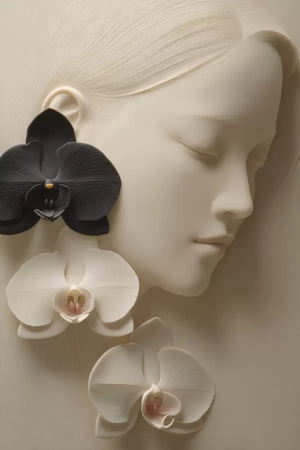 Poster meisje met orchideeën in bas-reliëfstijl N° f47941