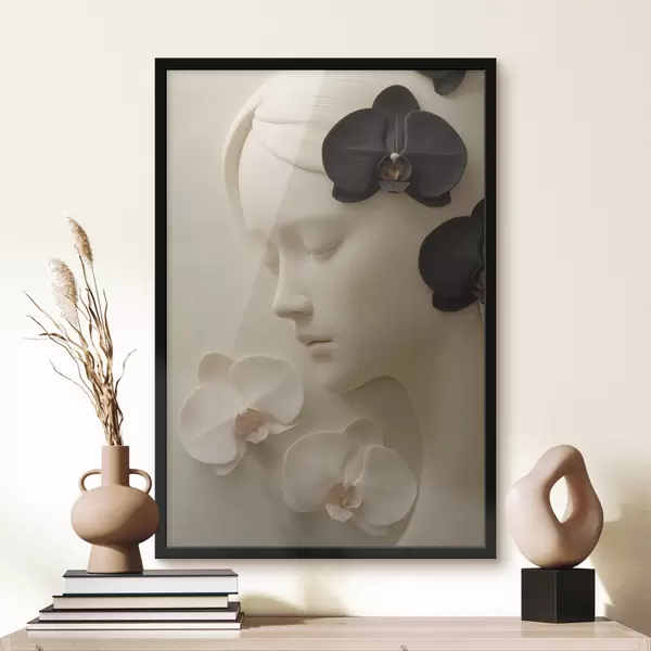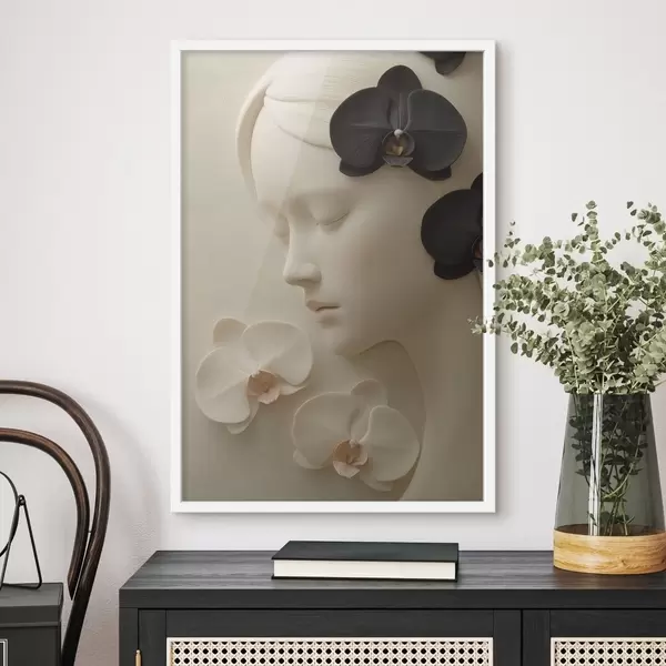 Poster meisje met orchideeën in bas-reliëfstijl N° f47942