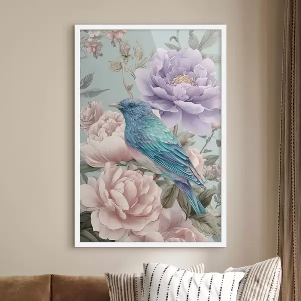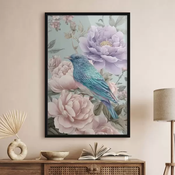 Poster zingende vogels in rozen f47944