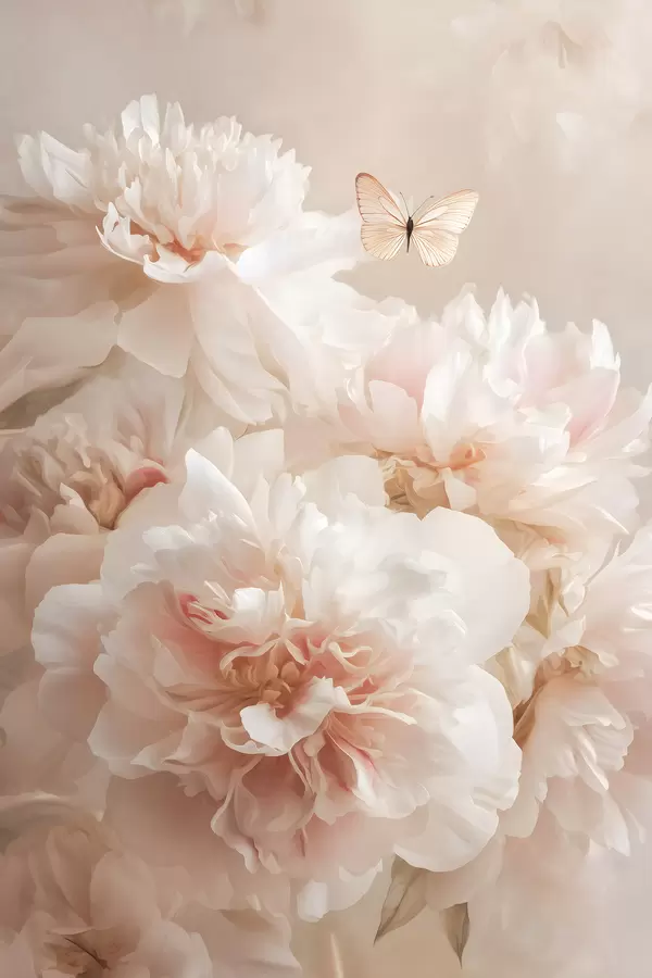 Poster weelderige roze pioenrozen met een vlinder N° f47954