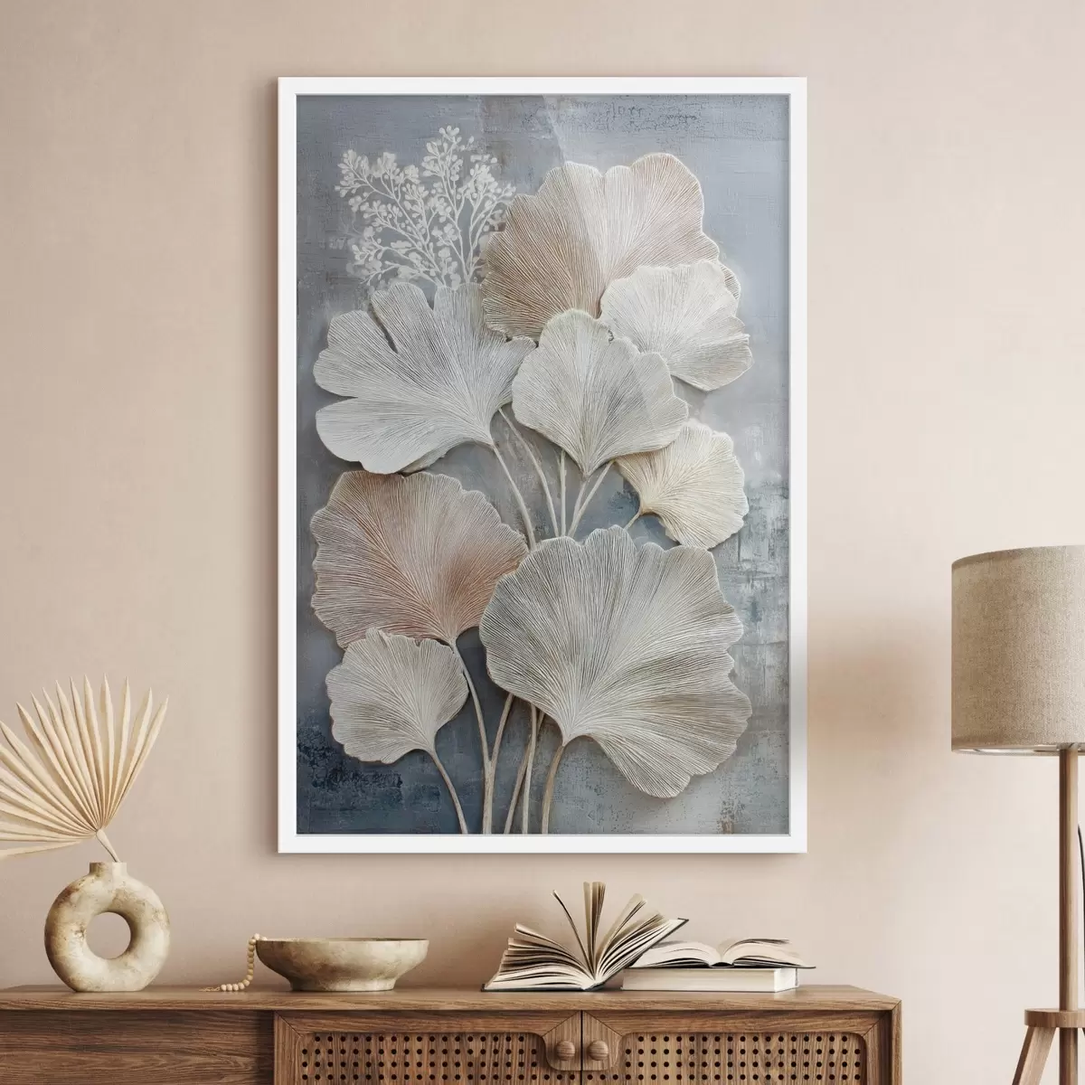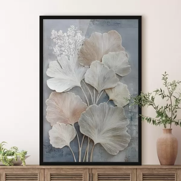 Poster Abstracte bloemcompositie in een beige-blauw kleurenpalet N° f47963