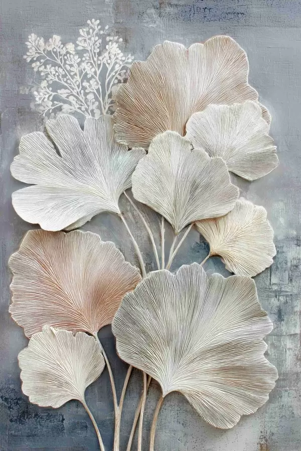Poster Abstracte bloemcompositie in een beige-blauw kleurenpalet f47963