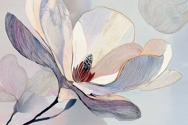 Poster Gestileerde magnoliabloemen met verfijnde contouren N° f47968