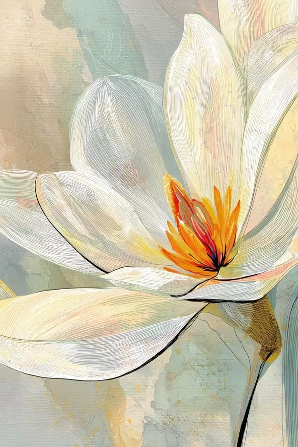 Poster Abstracte magnolia's in een pastelkleurenpalet met nadruk op lineaire grafische elementen N° f47970